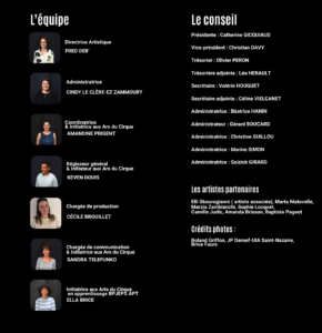 Mettant en œuvre les conditions optimales d’apprentissage et de pratique des différentes disciplines du cirque, du cirque aérien et des arts voisins pour les professionnels et les amateurs.